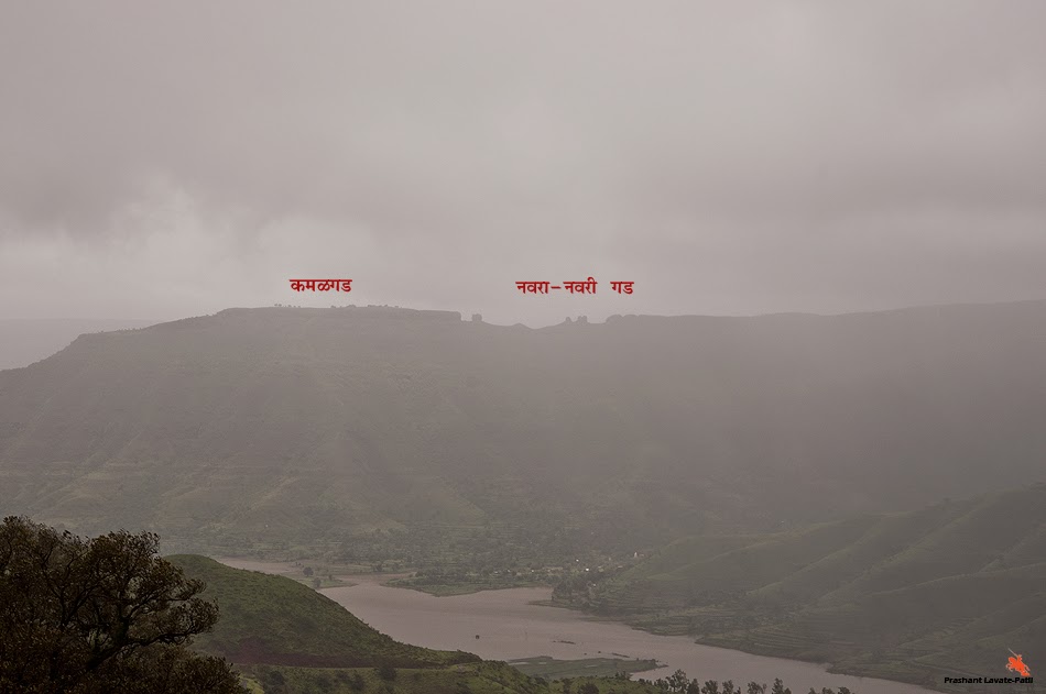 बसल्या बसल्या दगडून आजू बाजूच्या परिसराची ओळख करून दिली….सरळ पुढे केंजळगड दिसत होता … उजव्या हाताला कमळगड डोके काढून उभा होता.. त्याच्या बाजूला नवरा-नवरी गड … डाव्या बाजुला मांढरदेवीचा डोंगर …. दाट धुके होते त्यामुळे फोटो नाही काढता आला … तरीपण प्रयत्न केला