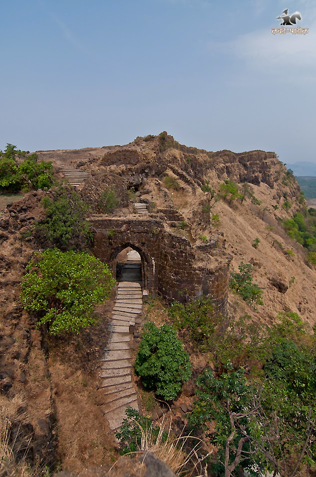 गडाचा महादरवाजा अगदी बुलंद आणि जिवंत वाटत होता, सुबक अश्या पायर्या महादार्वाज्यातून जातात, अगदी दिमाखदार असा दरवाजा आहे, आजही वातावरणाशी आणि मनुष्यांच्या नालायक कृत्यांशी झुंजत ताठ मानेने उभा आहे. थोडा वेळ भावनिक करणारा आणि त्याच्या रुबाबाने मन हेलावून टाकणारा असा हा महादरवाजा. दरवाज्यातून आता जाताच गडाची परिस्थिती कळते, अतिशय बिकट अशी अवस्था आहे गडाचे अवशेष जवळ-जवळ शेवटचे श्वास घेत आहेत, त्यातून हि जर कल्पना केली तर त्यावेळचे सौंदर्य काय असेल याचा एक विचार मनाला समाधान देवून जातो,