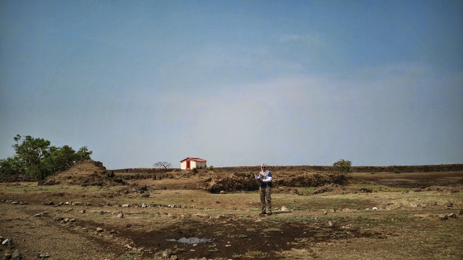 आमच्याबरोबर ३-४ कुत्र्यांची फौज पण होती आमच्या मागे-पुढे चालत होती, गडावर जावूपर्यंत त्यांनी काही आमची साथ सोडली नाही. २-३ चांगले फोटो मिळाले… पुढे जाताच पवार कालीन गुहा होती बाजूलाच गणपतीचे मंदिर … थोडावेळ थांबून फोटो काढले … उजव्या हातला मस्त नजारा दिसत होता …