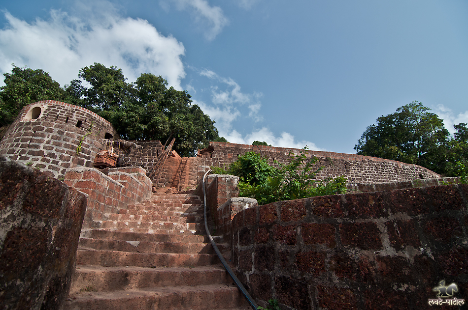 बालेकिल्ला बघून बाहेरच्या तटबंदीवरून फिरत फिरत पूर्ण किल्ल्याचा परिसर पाहत आम्ही आता बाहेर पडायच्या मार्गावर होतो, जाता जात किल्ल्याचे फोटो घेत होतो, तटबंदीच्या डागडूगीचे काम चालू आहे गडावर, ते काम पाहून एक बात नक्की आहे की, एक दिवसी पूर्ण बांधकाम आजच्या पद्धतीने होईल, आणि १७ व्या शतकातले किल्ले स्थापत्य ही फ़क़्त इतिहासाच्या पुस्तकातला धडा राहील.