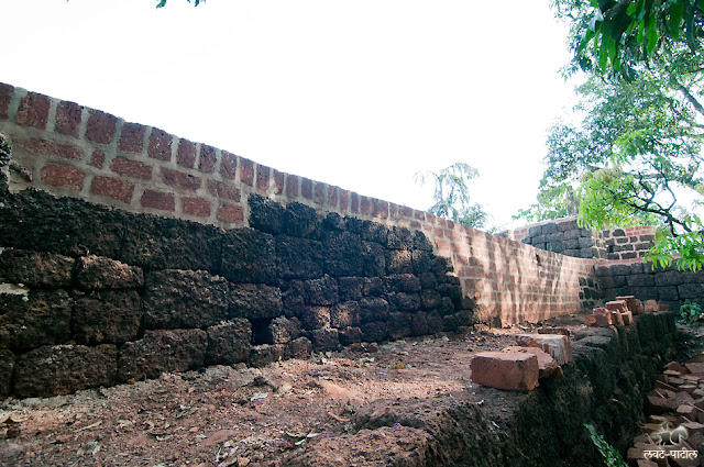 मोजून 10 मिनिटांत वरती पोहचलो, गडाची ततबंदी अगदी रुबाबदार आहे, तटबंदीच्या डागडुगीचे काम चालू आहे गडावर कोणत्या तरी बंगल्याचे कंपाउंड करावे तसे सुरु आहे, नेहमीप्रमाणे सरकारी बुद्धिमतेचे अतिउत्तम उदाहरण देणारे काम चालु आहे.