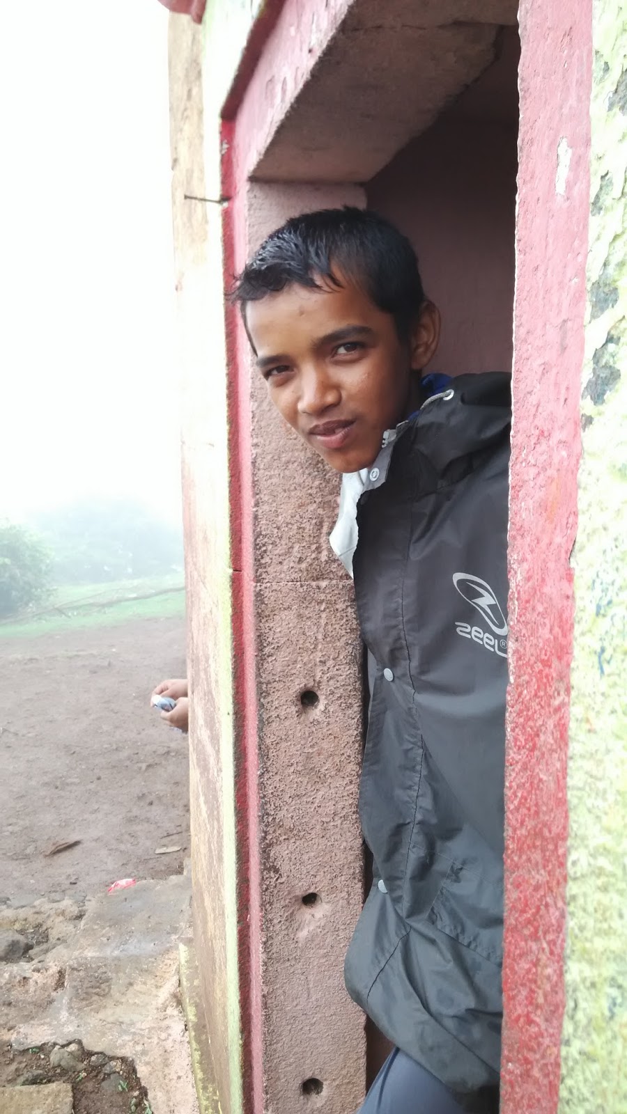 बिगीबिगी आम्ही हनुमानाचा जन्म झाला ती जागा पाहण्यासाठी निघालो, भरपूर पायऱ्या चढून जायचे होते आणि जोराचा पाऊस सुरु झाला होता, मस्त भिजत गपा हाणत चालत होतो आमचा ज्ञानेश्वर गडाची माहिती देत चालला होता आणि नवीन नवीन मराठी शब्द शिकवत होता …. जसे …