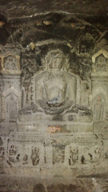 किल्ल्यावर चढत असताना वाटेतच पायऱ्यांच्या डाव्याबाजुला एक गुहा किवा लेणी म्हणा ती दिसतात दोन खोल्यांची गुहा आहे आणि या गुहीत अतिशय सुरेख अश्या मुर्त्या कोरल्या आहेत पाहता क्षणी हि गुहा  जैनधर्मीय असल्याचे दिसून येते.