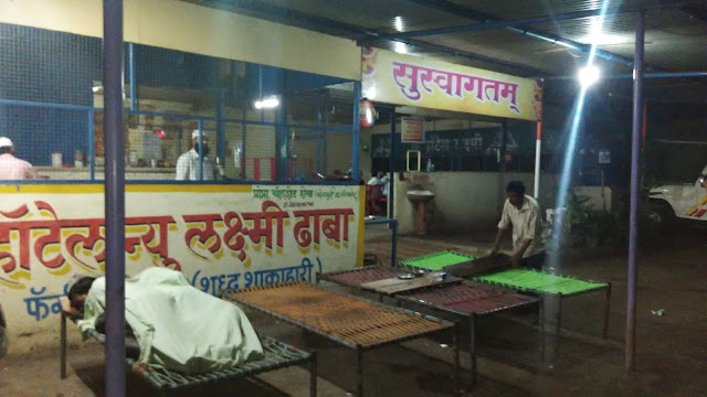 आता जेवणाचा बेत होता पण एकही “शुद्ध मांसाहारी” खानावळ दिसत नव्हती …. शोधत शोधत आम्ही चंदनापुरी भागात पोहचलो … तिथे एक उजव्या बाजूला हॉटेल दिसले पण आमची गाडी जरा पुढे गेली होती … म्हणल आता भूक पण लागली आहे आणि १० वाजून गेलेत पुढे कुठे मिळेल माहित नाही म्हणून पुन्हा गाडी मागे घ्वून हॉटेल पुढे गाडी लावली …