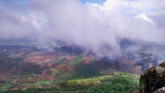 दर्शन करून थोडेबहुत फोटो काढून आम्हाला सीतेची गुहा आणि अंजनेरी मातेची गुहा पहायची होती … जाताना गडाच्या पूर्वेला मस्त कडा आहे ती पहायला गेलो, मजबूत वार आणि ढग आणि त्यात हलके उन पडले होते, सह्याद्रीचे बेलाग रूप जे आपण म्हणतो ते रूप सह्याद्रीचे दिसत होते, जोराच्या वार्यामुळे ढग पळत होते आणि त्यातून सूर्याचे किरण .. व्हा …. काय देखावा होता ….