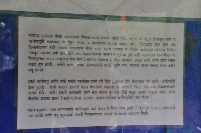 पण एका गोष्टीने मन दुखून जाते ती गोष्ट म्हणजे ज्या बाजींमुळे स्वराज्याचा धनी वाचला त्यांची समाधी अशी एकांतात ? साधा एक फलक लावण्याची हि गरज कोणाला वाटली नाही …???