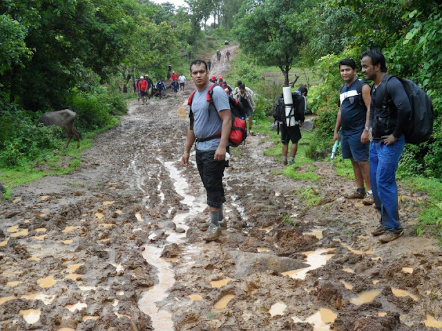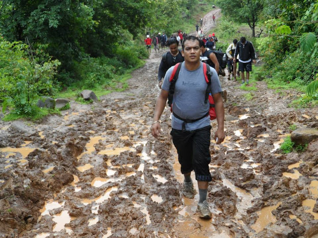 हा पूर्ण जो प्रवास आहे तो फ़क़्त चिखलातून, भाताच्या शेतातून आहे… खुपच मजेदार आणि निराळा प्रवास आहे वाटेवरती खूप चिखल असतो, पाणी असते पाय निसरून पडण्याची शक्यता नक्कीच असते.
