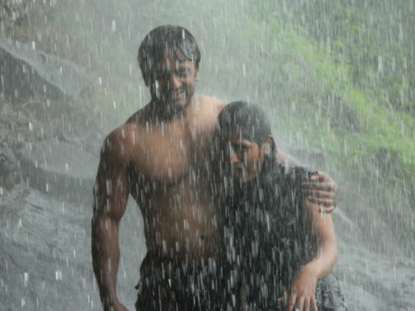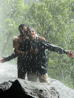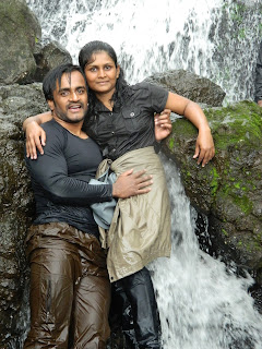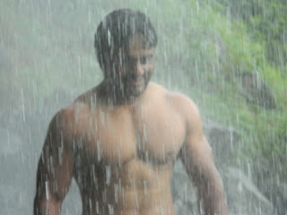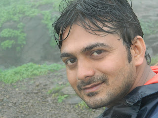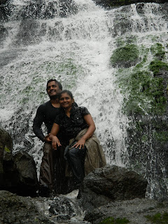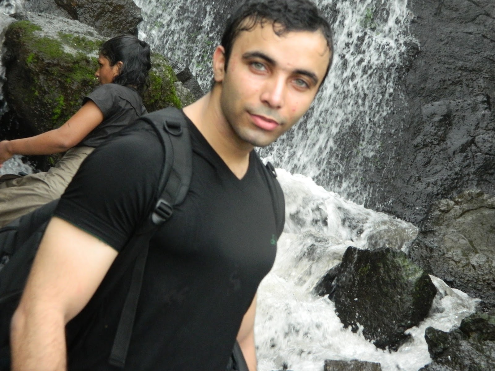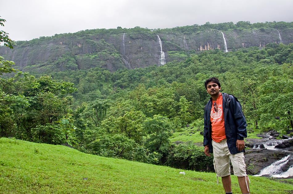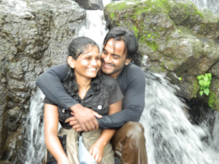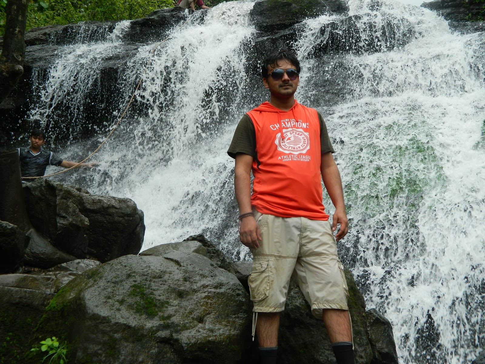 दुसरी शिडी पार केल्यानंतर मी तिसर्या शिडीकडे सरसावलो.. पावसामुळे वरतून घरंगळत येणारे पाणी.. नि निसरडी वाट.. त्यामुळे आम्ही आता सगळे जवळपास घोडागाडी करुनच जात होतो.. तिसरी शिडी मात्र खुपच सोप्पी वाटली.. पटकन चढुन गेलो नि मग पुढे जिथुन पाण्याचा छोटेखानी झरा येत होता त्याच वाटेने आणखी वर चढलो.. खुपच मजा येत होती.. कपडे भिजतील, चिखलाने माखतील इकडे लक्षच नव्हते.. बस फक्त आपल्या हातापायांची पकड बरोबर आहे ना याचा अंदाज घेत पुढे जात होतो.. त्या झर्याची वाटेने वरती आल्यावर उजवीकडे गुहा लागली.. तिथेच काहि काळ थांबुन विश्रांती घेतली.. गुहेसमोरच वरतुन उंचावरुन पडणारे पाणी अंगावर झेलण्याची मजा काही औरच होती. याची कल्पना या फोटोवरुन येईलच..
