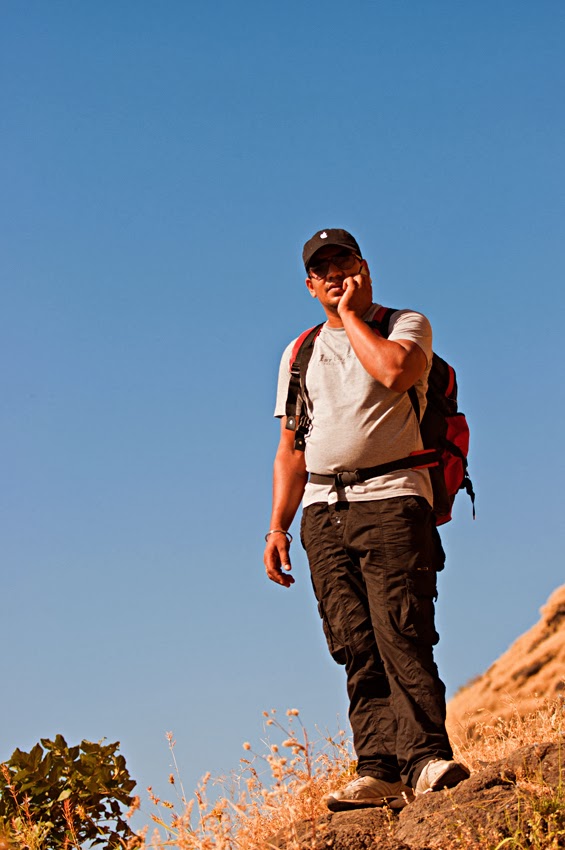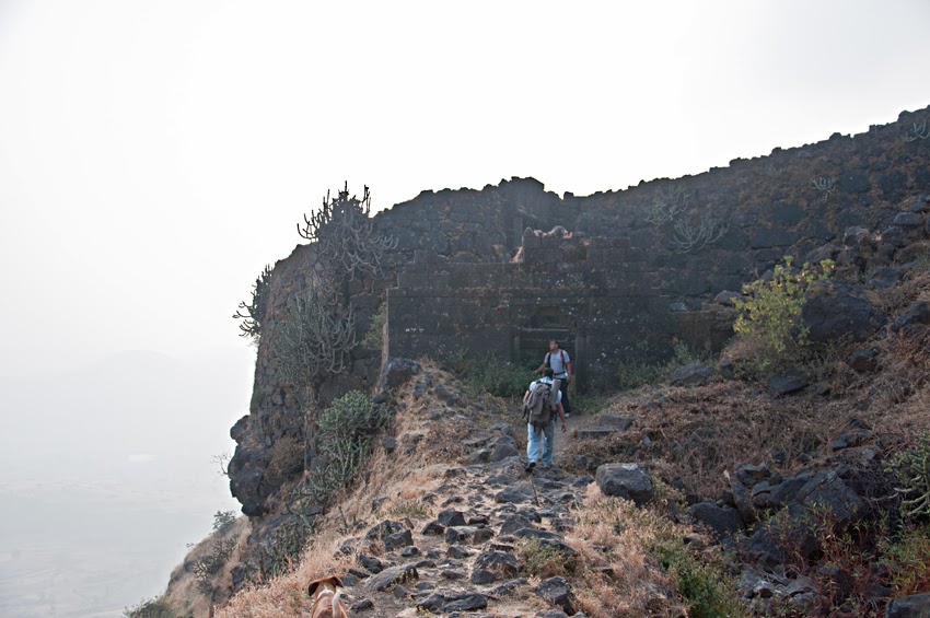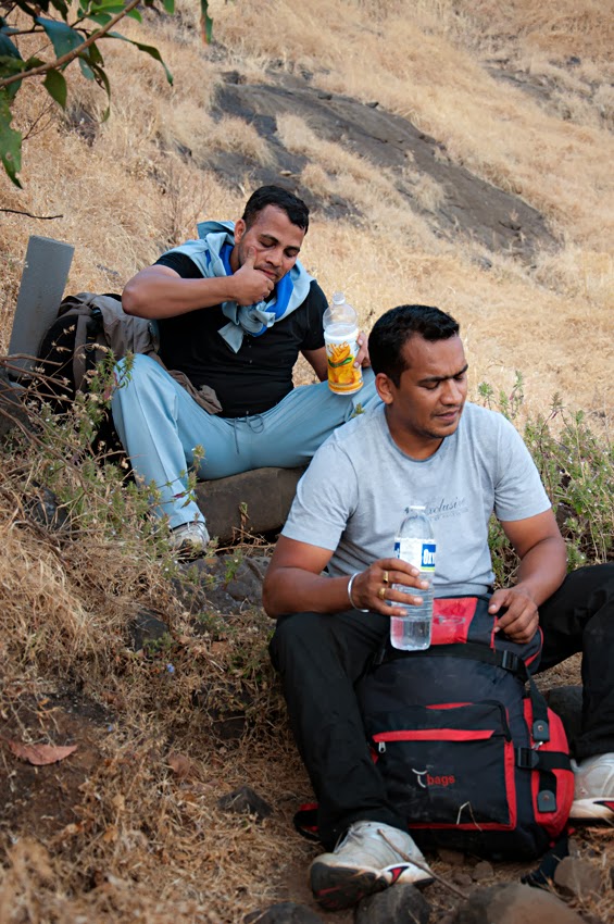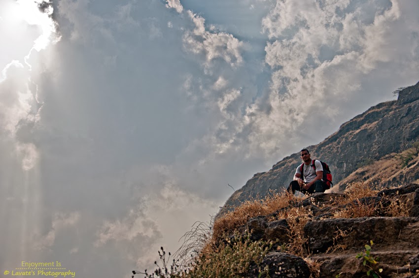चांगले उन पडले होते , पाटीवर मस्त वजन होते किल्ला पण मस्त खडा होता सरळ वाट कुठेच नाही , फ़क़्त चढणेच होते … खूप घाम येत होता … दम लागत होता