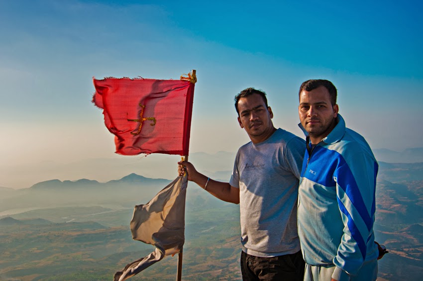 जसे आम्ही कड्यावर पोहचलो … असे वाटले ढगांच्या वरती बसून जमीन पाहतोय .. नक्कीच कोकण कड्यासारखी नव्हती पण एकदम जबरदस्त होती …. कोणी विचार हि करू शकणार नाही तिकडून चढायची … म्हणूनच वाटले कि का इकडे तटबंदी नाही …. एकदम मस्त वर होता सकाळची कोवळी सूर्याची किरणे …. व्हा …. अतिशय सुंदर आणि सुखद अनुभव…. मस्त पैकी आम्ही फोटो काढले … थोडा खान-पिन झाले…..